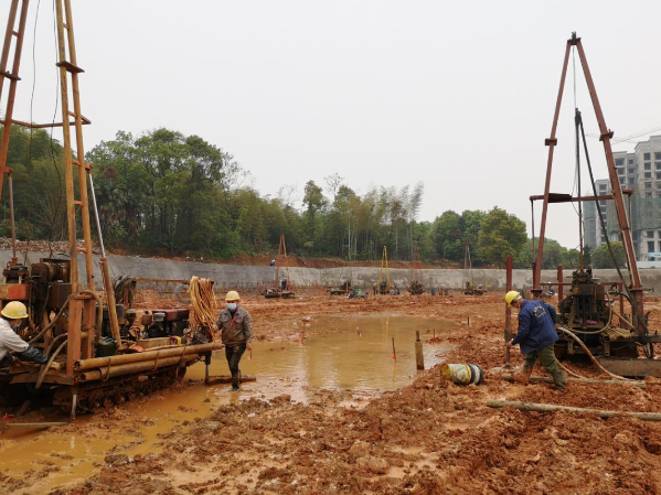 該項目是咸寧市重點棚改項目,對于讓越來越多的住房困難群眾的居住條件得到明顯改善有重要的意義。面對疫情影響、項目工作量大、工期緊的特點,60余名技術(shù)、工作人員涉及從不同地區(qū)返漢、離漢、赴咸等繁雜手續(xù)問題,我公司接到建設(shè)方的開工通知后,在較短時間內(nèi)抽調(diào)技術(shù)骨干、協(xié)調(diào)相關(guān)手續(xù)、組織安排人員及設(shè)備進(jìn)場作業(yè)。目前進(jìn)場鉆機10臺,后期根據(jù)疫情逐漸向好的趨勢,計劃再增加5臺設(shè)備,按業(yè)主要求按時保質(zhì)完成工作任務(wù)。