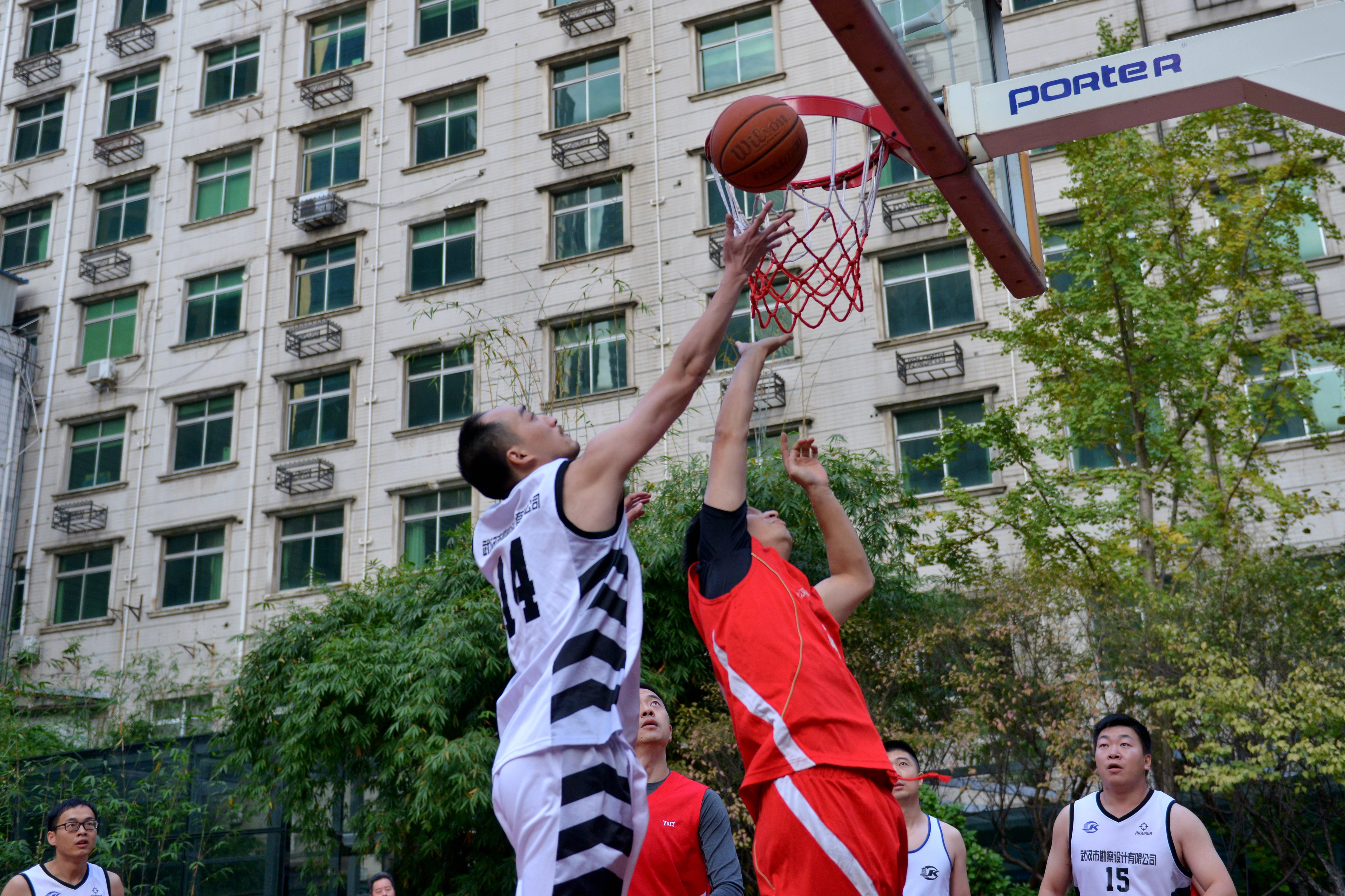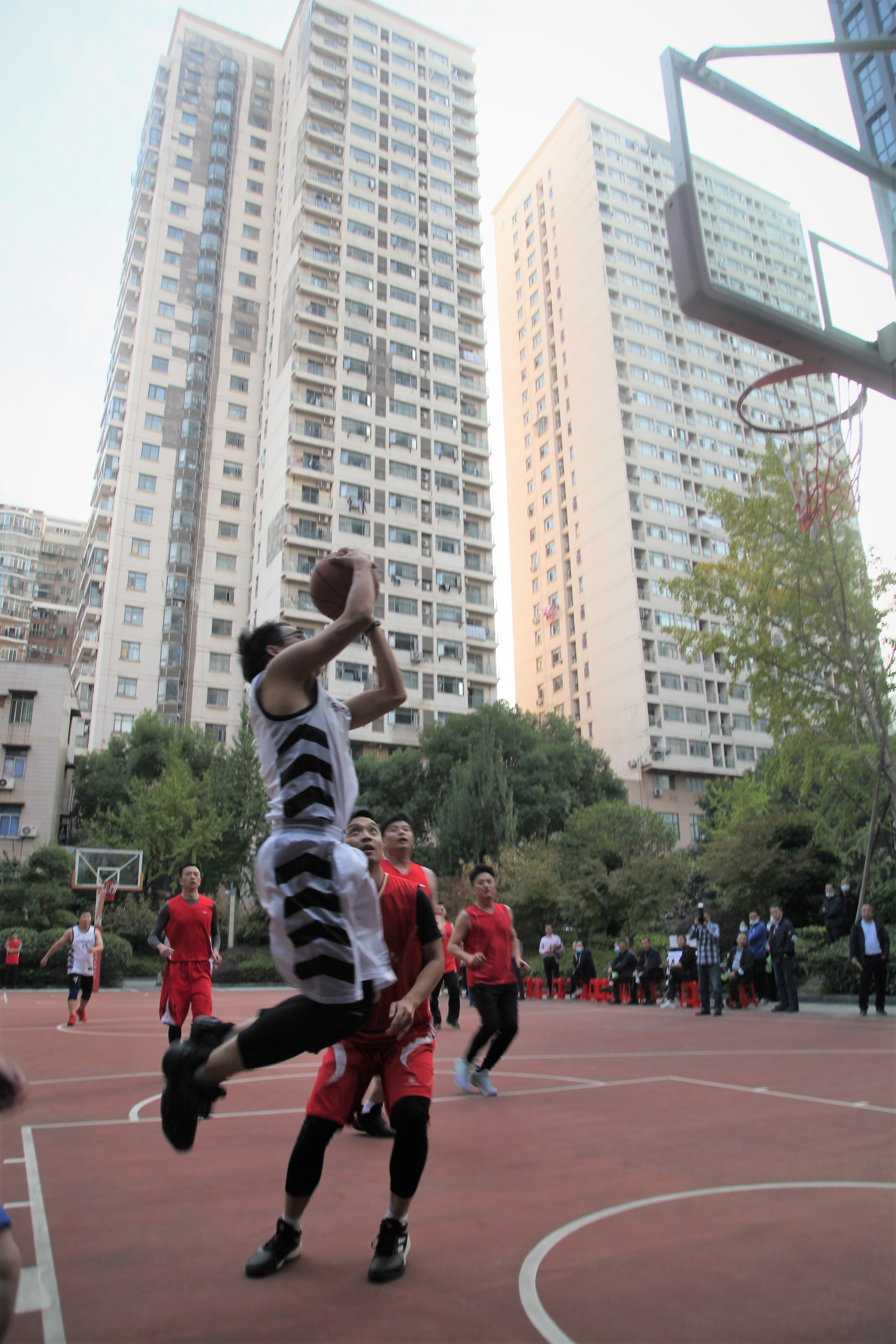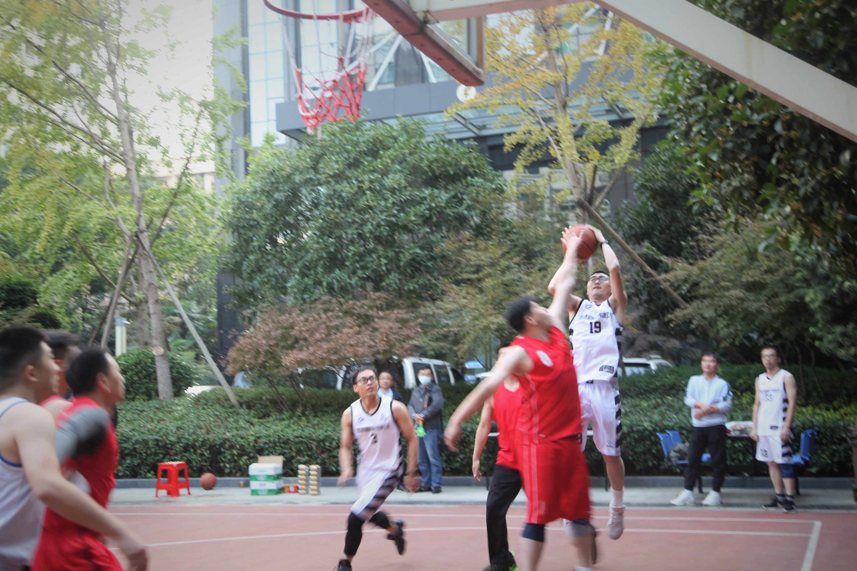 穿著紅色球衣的測繪院籃球隊一開場表現(xiàn)出了默契的團(tuán)隊配合和精準(zhǔn)的外線投射能力。公司隊員內(nèi)外線均衡發(fā)揮,依靠突破和遠(yuǎn)投,打出了高質(zhì)量的進(jìn)攻。雙方你來我往,比分交替上升。