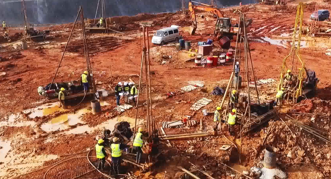 在施工勘察階段,根據(jù)業(yè)主要求,勘察需與施工同步進(jìn)行,彼時(shí)正值基坑開挖,作業(yè)面少,但項(xiàng)目任務(wù)重、時(shí)間緊。在接到業(yè)主進(jìn)場(chǎng)通知后,團(tuán)隊(duì)迅速召集了近百臺(tái)鉆機(jī)及相關(guān)作業(yè)人員,就作業(yè)面少問題,團(tuán)隊(duì)人員不斷與施工總包方溝通協(xié)調(diào)并制定施工、勘察方案,最終通過團(tuán)隊(duì)的拼搏努力及與總包方的密切配合,順利完成了施工勘察任務(wù)。