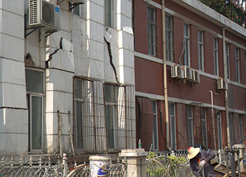 事故現(xiàn)場位于省人民醫(yī)院附近,張之洞路從解放路路口至復(fù)興路路口一段。事發(fā)工地上,大型吊車正開展設(shè)備清理吊運工作,事故地段道路已設(shè)置施工圍欄,只留下不到兩米寬的安全通道。盡管險情已初步得到控制,但事故區(qū)域邊緣樓房側(cè)壁大面積范圍內(nèi)出現(xiàn)裂縫,墻體輕微坍塌,有進一步下陷趨勢。