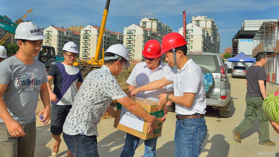 每到一處工地現(xiàn)場,肖建華院長和肖輝書記都會仔細聆聽項目的概況,問詢項目開展及現(xiàn)場作業(yè)人員生產(chǎn)生活等情況。在與現(xiàn)場職工親切交談過程中,肖建華院長和肖輝書記對堅守一線辛勤工作的作業(yè)人員給予了充分的肯定和高度的贊揚,并囑咐公司管理人員:一是在后勤方面務(wù)必給一線職工們最齊全的保障和最周到的服務(wù);二是在確保工程質(zhì)量和進度的同時,要注意高溫條件下的防暑降溫措施和安全生產(chǎn)保障措施。最后,肖建華院長、肖輝書記和廖建生董事長代表測繪院和公司向現(xiàn)場職工贈送了防暑降溫藥品和消暑解渴食品。