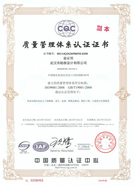 2015年6月3日~4日,中國質(zhì)量認(rèn)證中心對我公司(勘察公司和昌廈公司,下同)的兩個三標(biāo)一體化管理體系進(jìn)行了聯(lián)合監(jiān)督審核。本次監(jiān)督審核涉及到勘察公司三標(biāo)體系范圍測繪工程、土地登記代理增項(xiàng),昌廈公司三標(biāo)體系范圍工程勘察減項(xiàng),特別是勘察公司三標(biāo)體系的增項(xiàng),直接關(guān)系到公司相關(guān)業(yè)務(wù)的生產(chǎn)活動。為了做好迎審準(zhǔn)備,技術(shù)質(zhì)量部(體系辦)組織召開多次會議布置工作,并對各部門,特別是涉及到增項(xiàng)的測繪工程公司的準(zhǔn)備工作進(jìn)行多次監(jiān)督檢查。在公司領(lǐng)導(dǎo)的悉心指導(dǎo)和各部門的大力支持下,我公司順利通過了中國質(zhì)量認(rèn)證中心的監(jiān)督審核,2015年7月29日取得了新頒發(fā)的勘察公司和昌廈公司的三標(biāo)體系證書,為各生產(chǎn)部門的生產(chǎn)經(jīng)營活動提供了保障,為進(jìn)一步提升公司管理水平奠定了堅(jiān)實(shí)基礎(chǔ)。(技術(shù)質(zhì)量部)