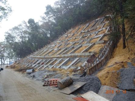 我公司承擔(dān)的東湖風(fēng)景區(qū)楓都山滑坡治理項目目前實施順利,已完成邊坡支護(hù)格構(gòu)梁的施工。