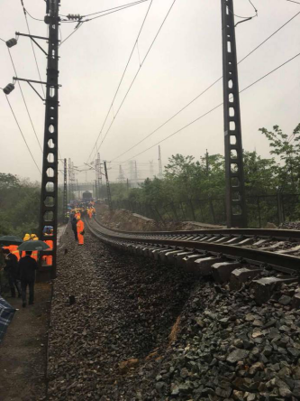 2018年4月12日凌晨,京廣普速鐵路1218KM+900M至1219KM+100M處路基垮塌。市國土資源規(guī)劃局領(lǐng)導(dǎo)接到應(yīng)急辦通知后,立即趕赴現(xiàn)場(chǎng)開展應(yīng)急處置工作,并將信息發(fā)布至“局地質(zhì)災(zāi)害隱患點(diǎn)工作群”內(nèi)。按照公司領(lǐng)導(dǎo)指示,地質(zhì)環(huán)境中心迅速行動(dòng),積極聯(lián)系市局領(lǐng)導(dǎo)確定事故位置,整理相關(guān)地質(zhì)資料,攜帶專業(yè)設(shè)備第一時(shí)間趕赴現(xiàn)場(chǎng),配合開展事故應(yīng)急調(diào)查工作。