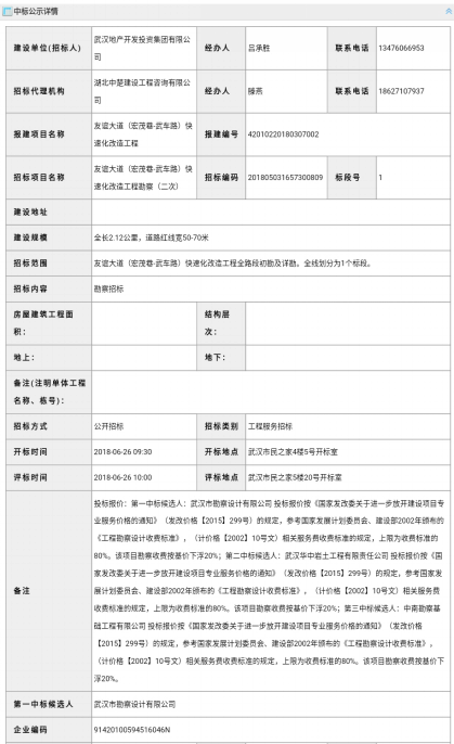 2018年6月26日—6月29日,經(jīng)投標(biāo),我公司中標(biāo)友誼大道(宏茂巷~武車路)快速化改造工程、中山大道(解放公園路—黃浦大街)綜合改造工程及姑嫂樹立交上橋匝道工程勘察項目。我公司承擔(dān)上述項目巖土工程初步、詳細(xì)勘察工作及后續(xù)相關(guān)服務(wù)。預(yù)計三條道路工程勘察合同金額450萬。