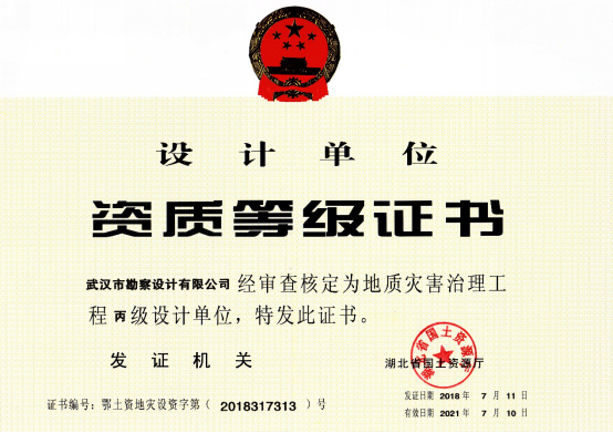 近日,湖北省國土資源廳發(fā)布了關(guān)于2018年度地質(zhì)災(zāi)害危險(xiǎn)性評(píng)估和治理工程資質(zhì)(新立、升級(jí))審批結(jié)果的公告,公司地質(zhì)災(zāi)害危險(xiǎn)性評(píng)估和地質(zhì)災(zāi)害治理工程勘查、設(shè)計(jì)、施工資質(zhì)申請(qǐng)一次性順利通過國土資源部審核,并成功取得了資質(zhì)證書。