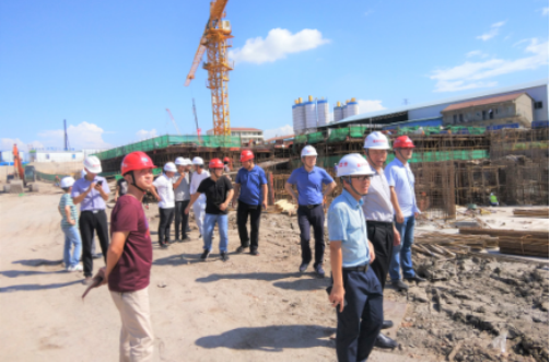 2018年8月13日下午,葛洲壩房產(chǎn)公司北京總部領(lǐng)導(dǎo)蒞臨武漢經(jīng)開紫郡籣園項(xiàng)目現(xiàn)場,視察指導(dǎo)工作。在葛洲壩武漢事業(yè)部總經(jīng)理黃延勝、武漢事業(yè)部工程總監(jiān)管中軍以及項(xiàng)目參建方工作人員陪同下,葛洲壩房產(chǎn)公司總工程師焦家海等領(lǐng)導(dǎo)頭頂烈日、不辭勞苦, 仔細(xì)查看了項(xiàng)目現(xiàn)場的施工進(jìn)度、質(zhì)量及安全等相關(guān)工作,并在隨后的現(xiàn)場會議上就檢查過程中發(fā)現(xiàn)的問題作出了指示。我司設(shè)計中心徐光耀、彭泉兩位工程師赴現(xiàn)場陪同檢查,就業(yè)主方領(lǐng)導(dǎo)關(guān)心的相關(guān)問題作了細(xì)致周到的解答。